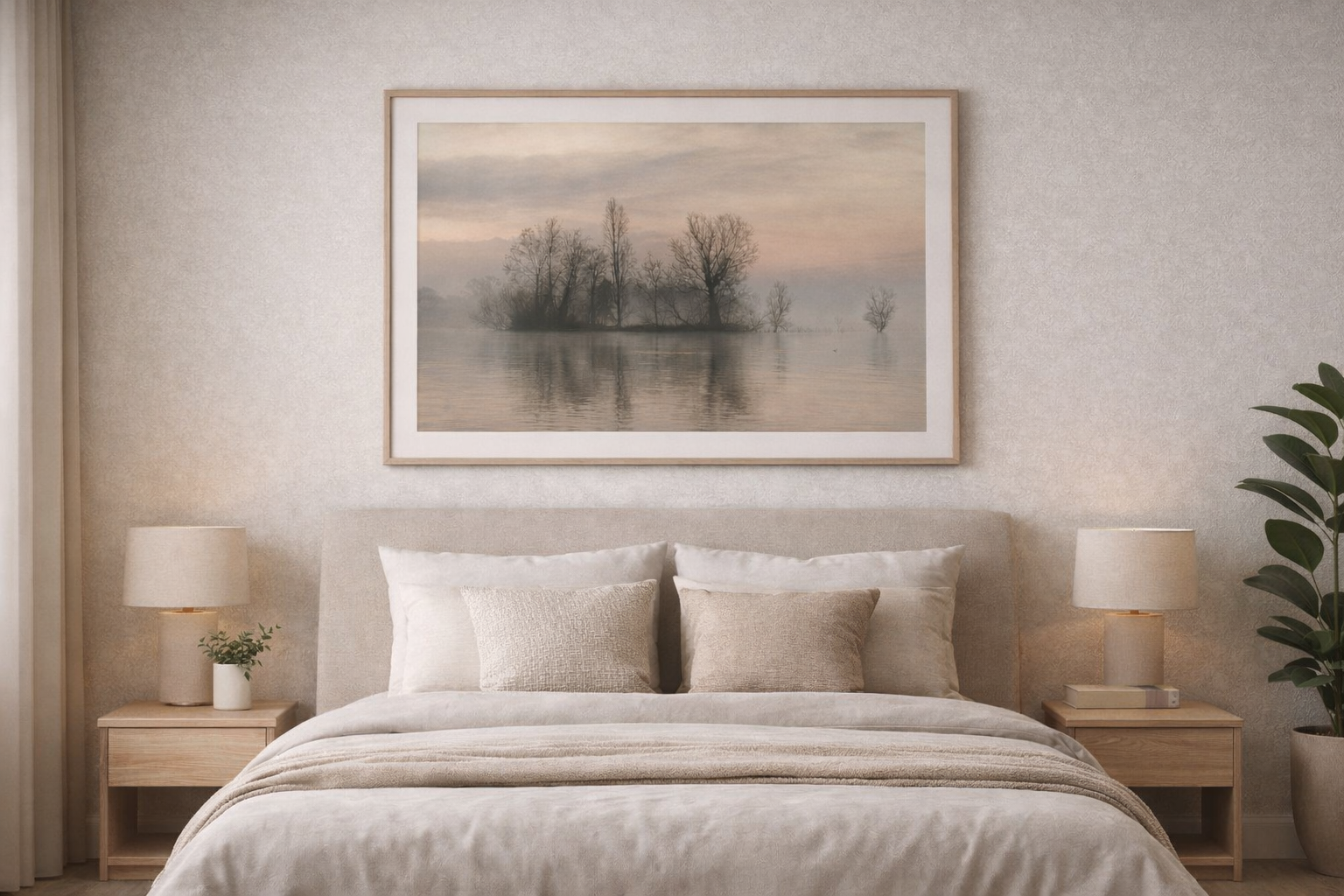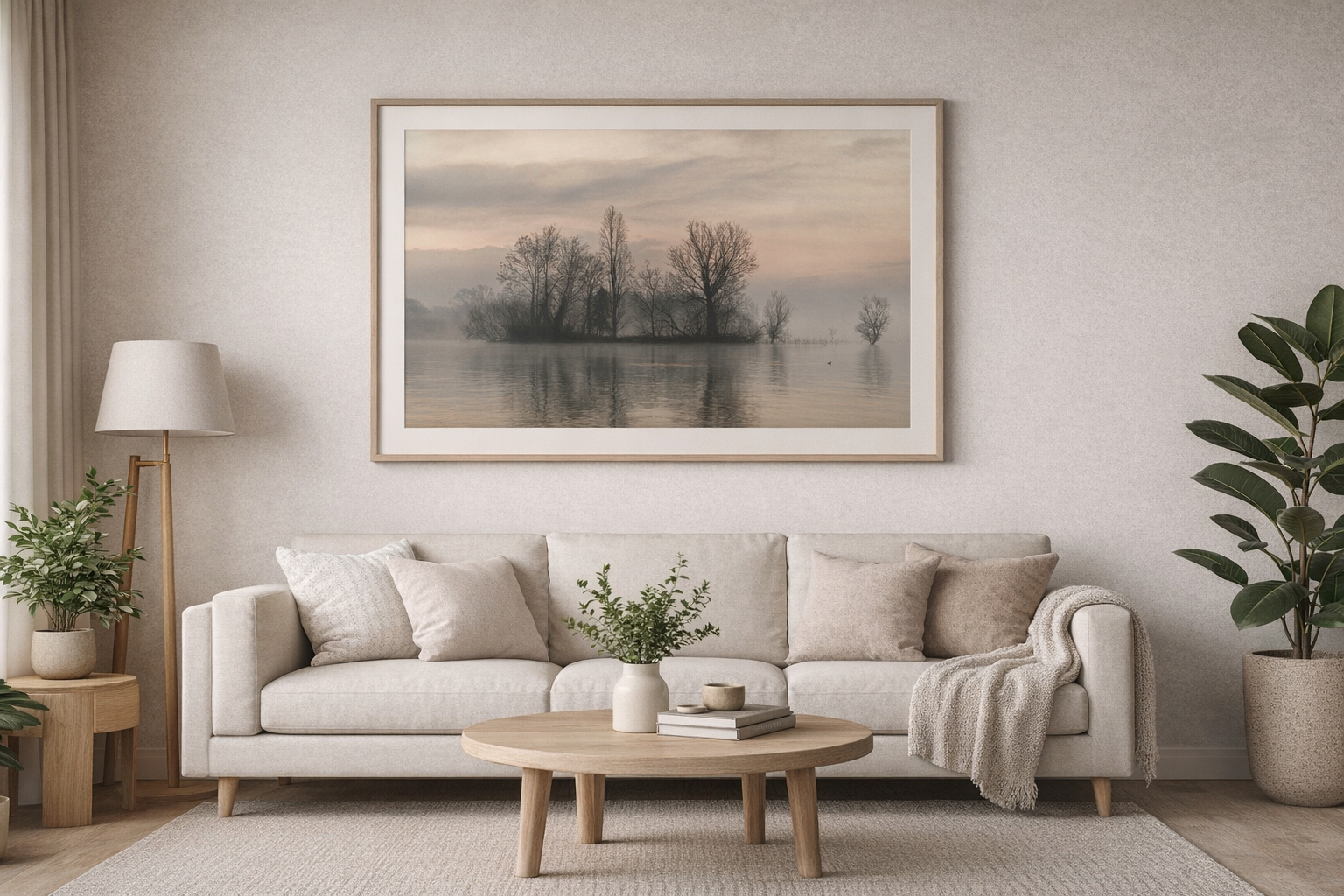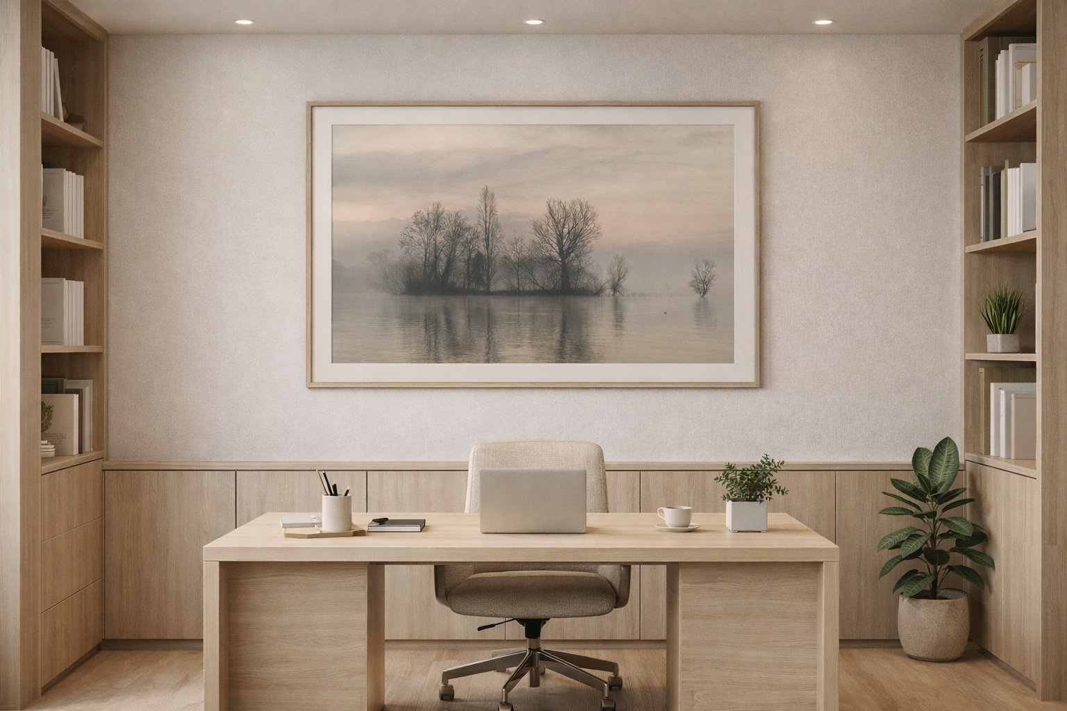 This artwork is particularly suitable if you are looking for a calming and relaxing image for your home or office, if you appreciate minimalist wall art that does not overwhelm the room, or if you are searching for a refined gift for photography and nature lovers. It is also a perfect choice when you wish to create a peaceful, meditative atmosphere. The soft fog, gentle colors, and mirrored reflections make this print ideal for daily contemplation and for bringing a sense of harmony to your environment.