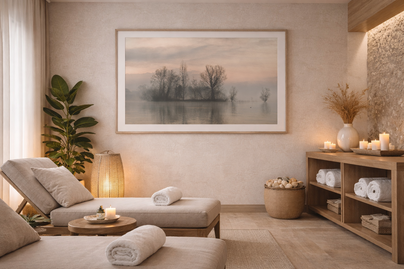 This fine art photograph works beautifully in living rooms, bedrooms, offices, reception areas, hotels, bed and breakfasts, spas, wellness centers, yoga and meditation rooms, and therapy spaces. Thanks to its neutral tones, it pairs easily with light wood, white walls, and modern or minimalist interiors, including Nordic and Japandi styles.
