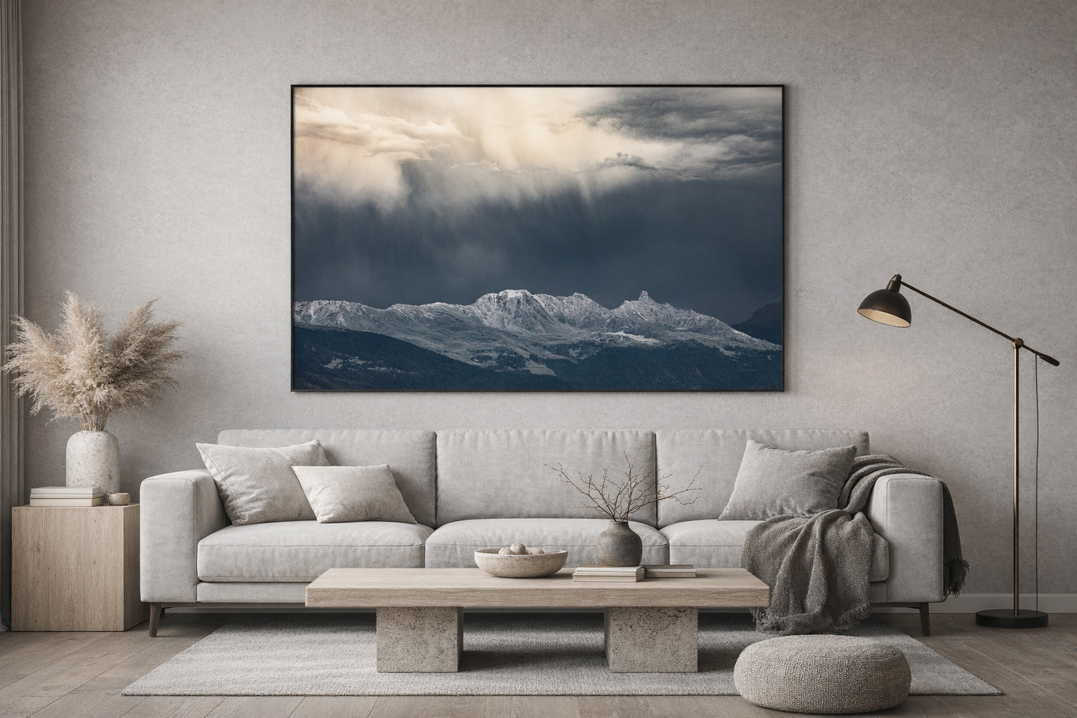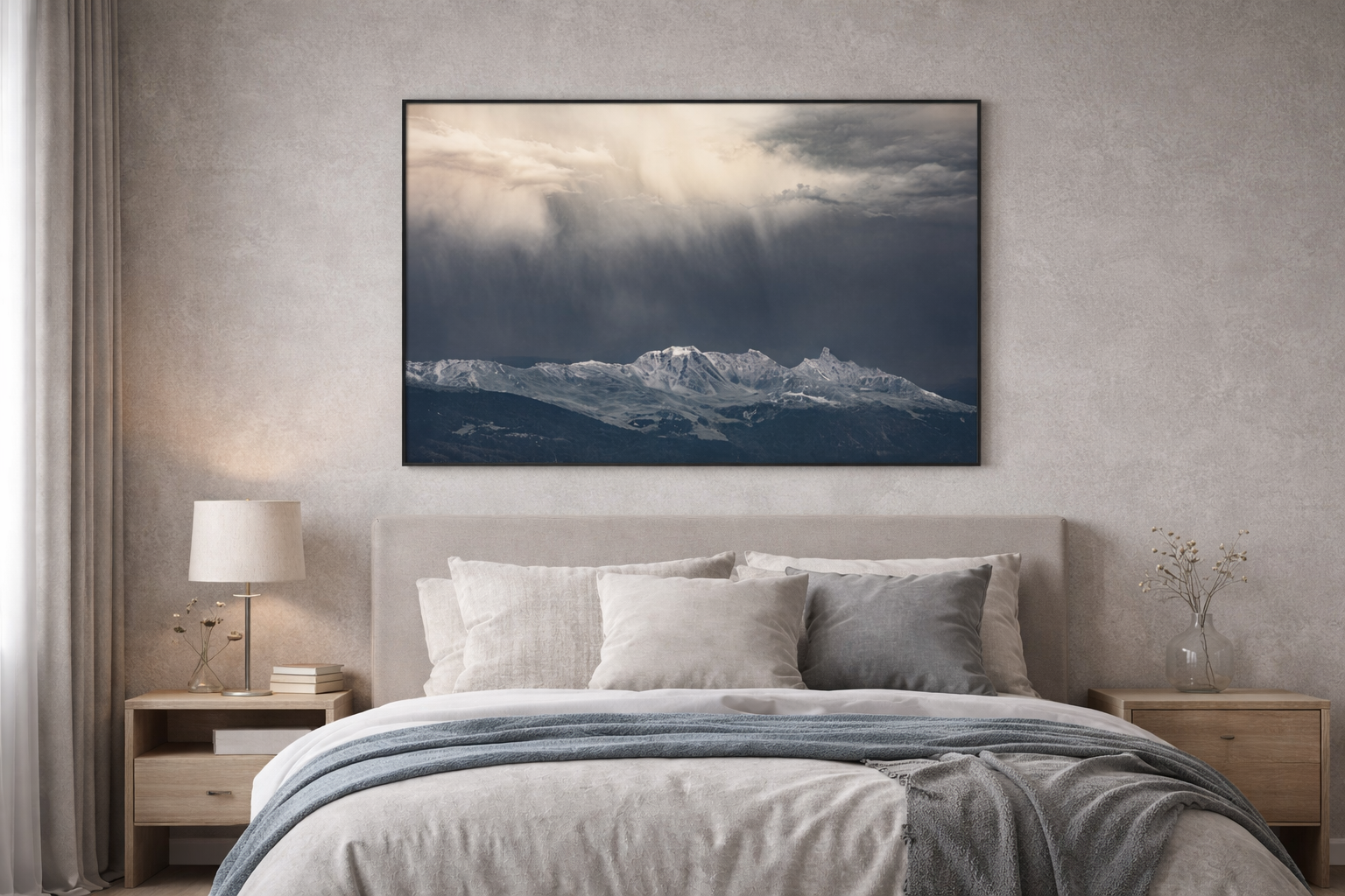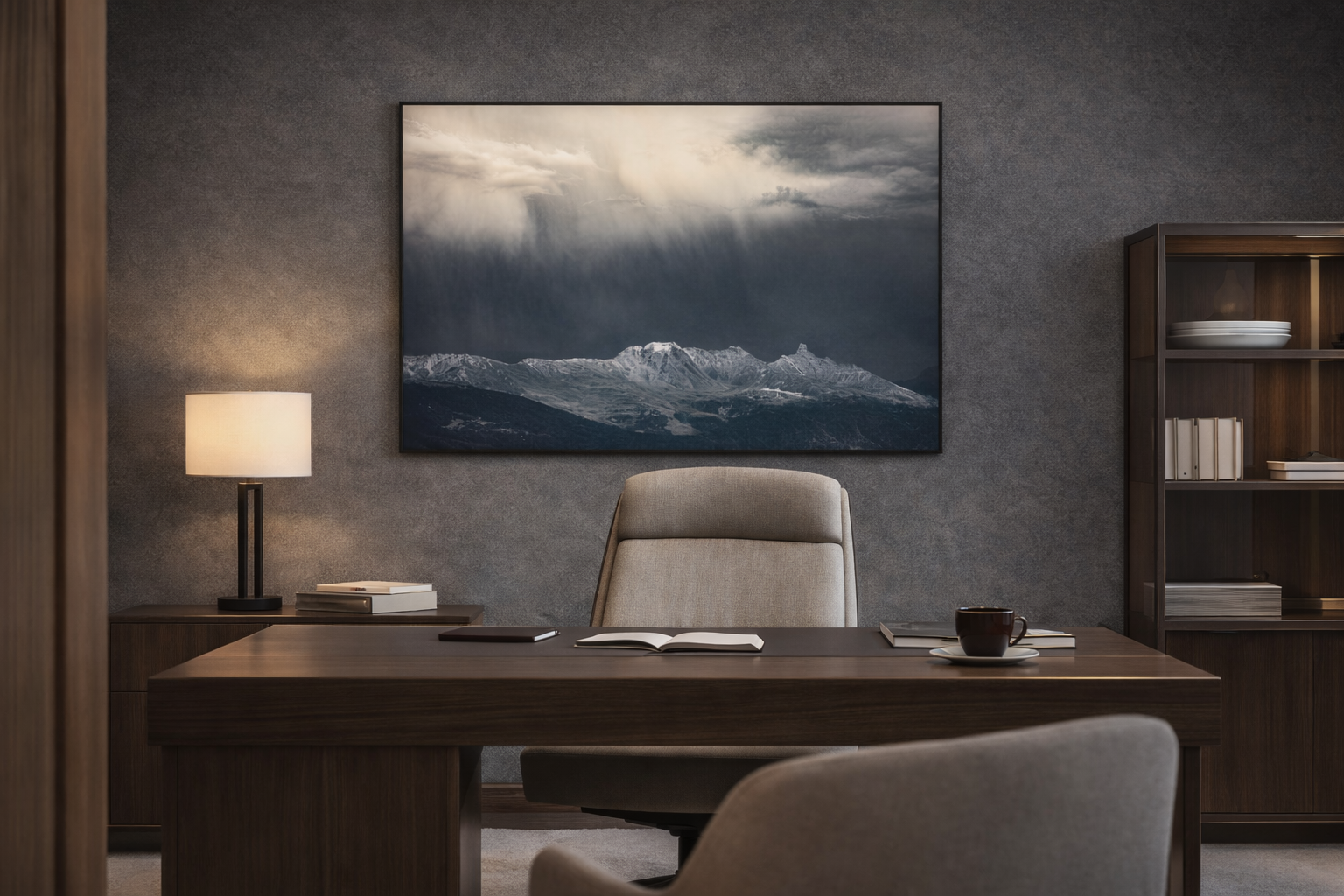 This artwork is particularly well suited for contemporary living rooms, minimalist bedrooms, and quiet personal spaces where calm and depth are desired. It also works beautifully in boutique hotels, curated hospitality spaces, and professional environments such as studios, offices, or consulting rooms, where the atmosphere benefits from a sense of balance, reflection, and visual restraint.