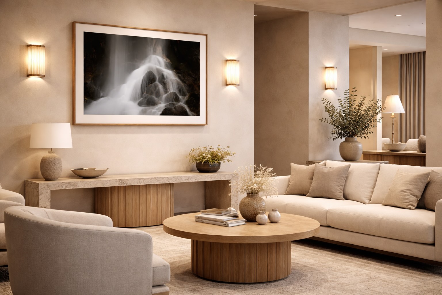 This fine art print is ideally suited for calm, thoughtfully designed spaces. It complements minimalist interiors, modern living rooms, and serene bedrooms, where its soft tonal palette enhances a sense of quiet and balance.