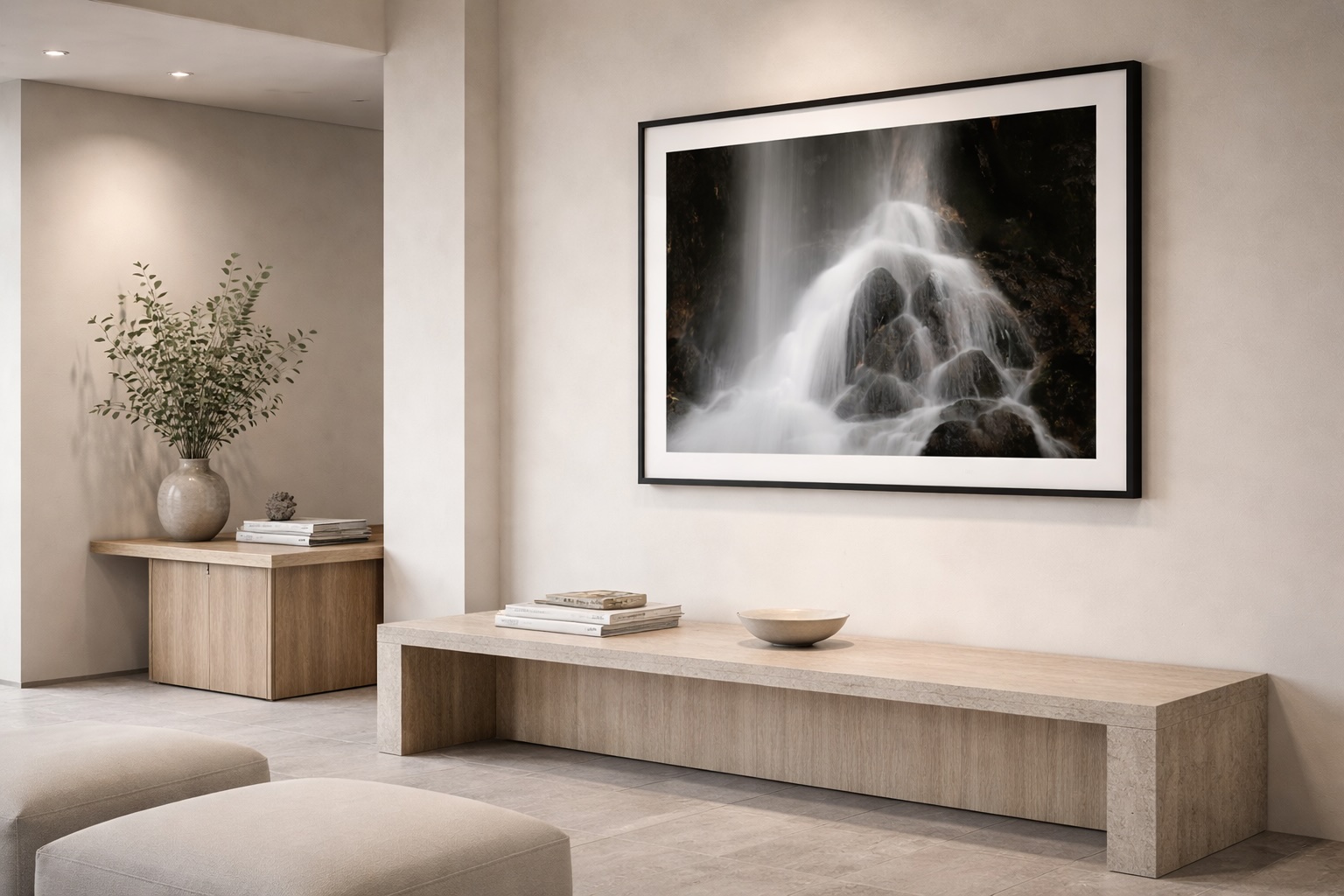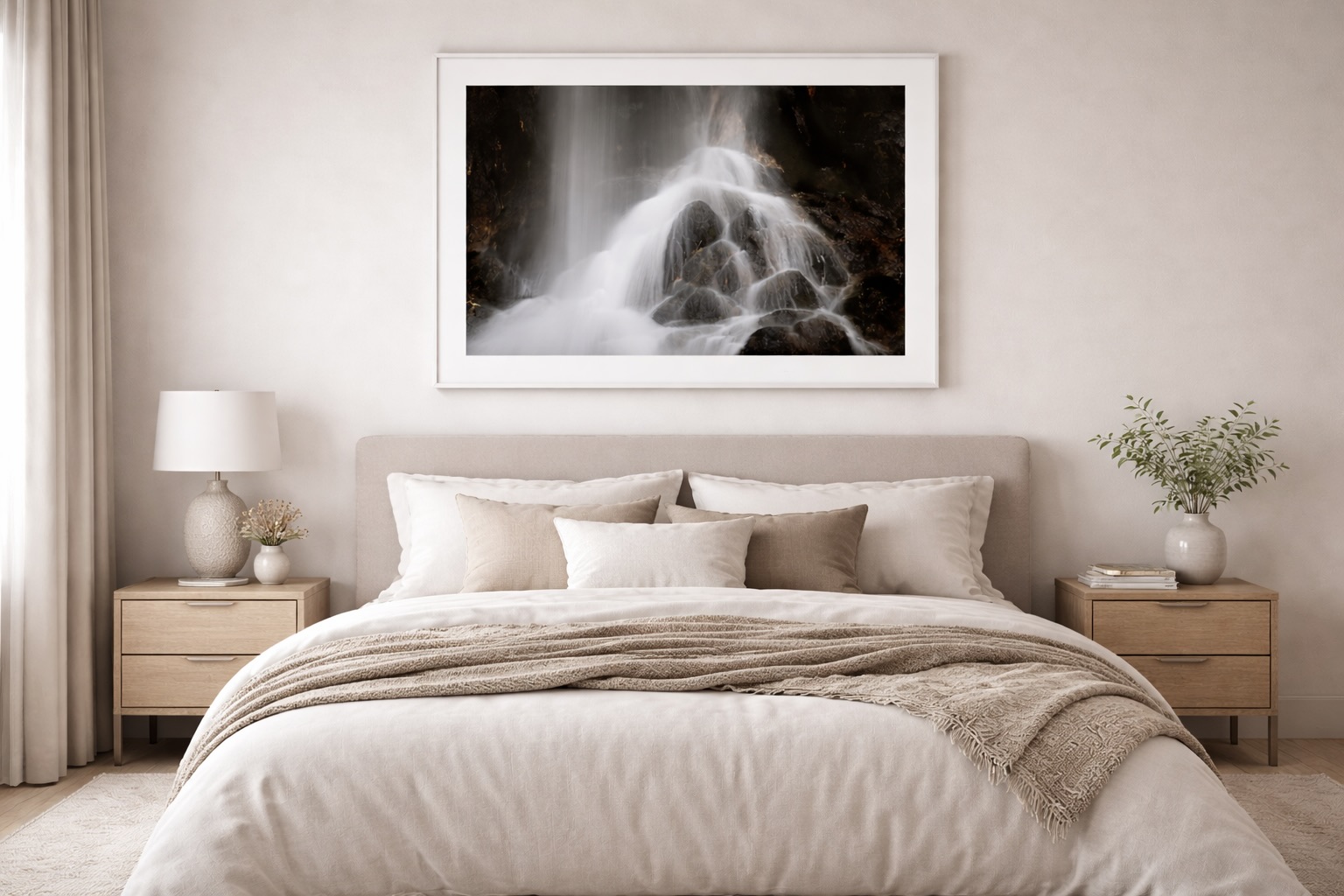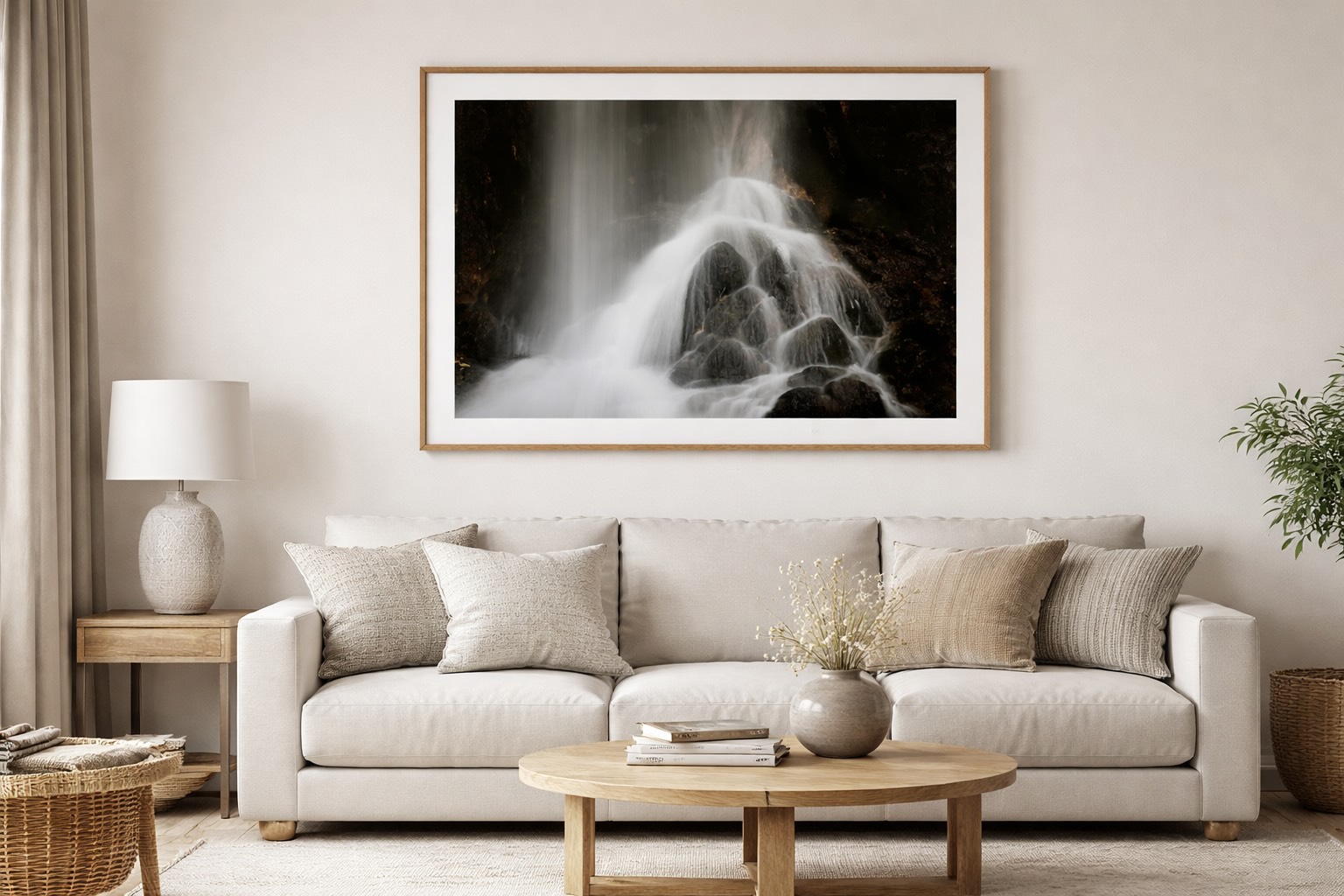 Printed on Hahnemühle Photo Rag, a museum-quality cotton paper with a refined matte finish, this fine art photography print reveals exceptional tonal depth and smooth grayscale transitions. Every nuance from the soft gradients of the falling water to the intricate textures of the rock is rendered with remarkable clarity and subtlety.